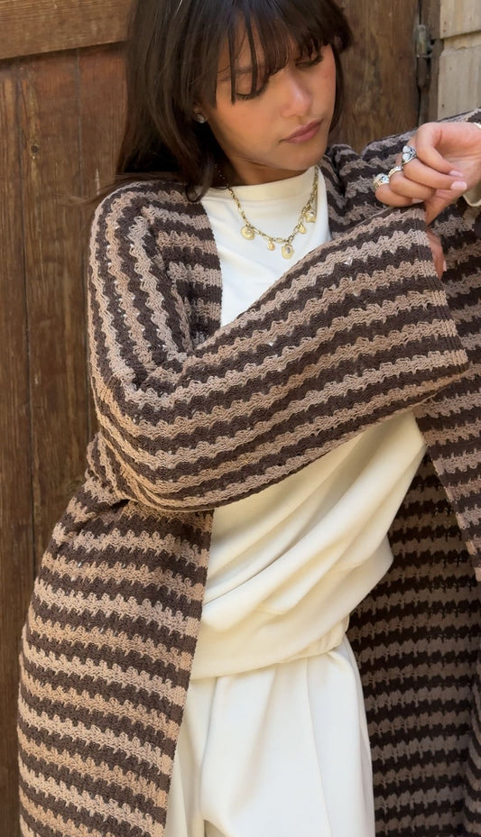 Cocoa Stripe Flow Cardigan