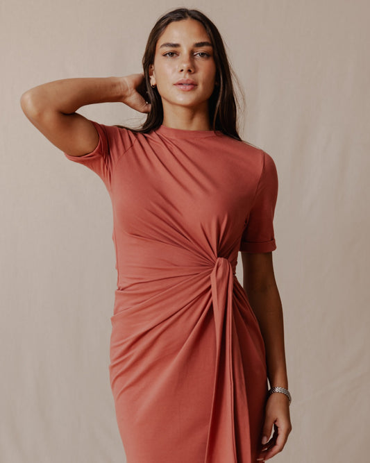 Side Tie Cotton Dress Brick