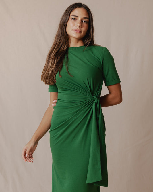 Side Tie Cotton Dress Green