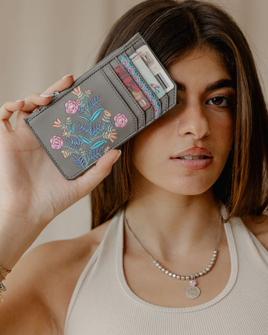 Grey x Pink Flowered Card Holder