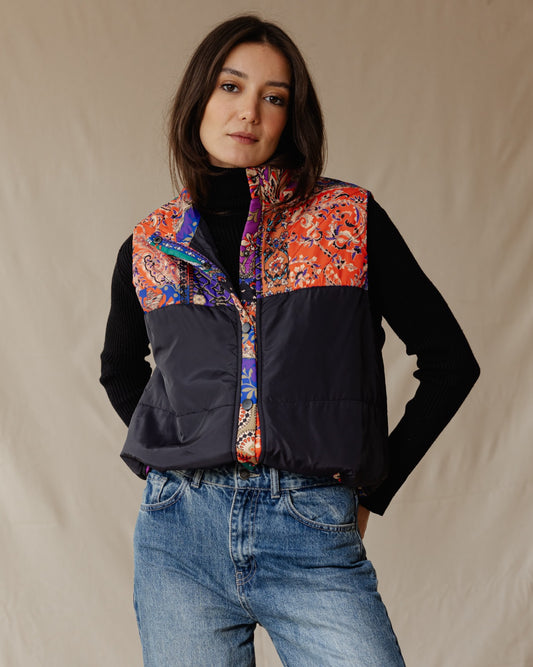 Indian Florals Waterproof Vest Petroleum