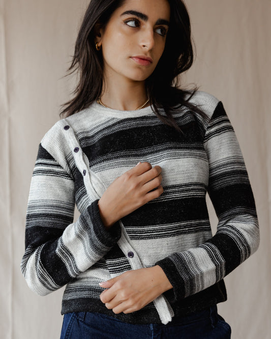 Asymmetrical Wool Top Black X Grey