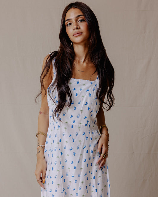 Tropical Nazar Palm Dress Blue