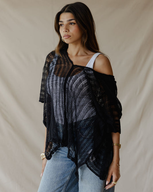 Summer Knit Poncho Black