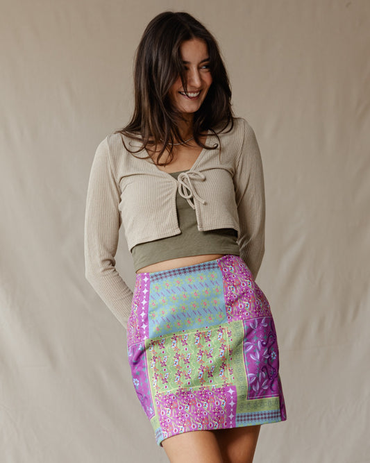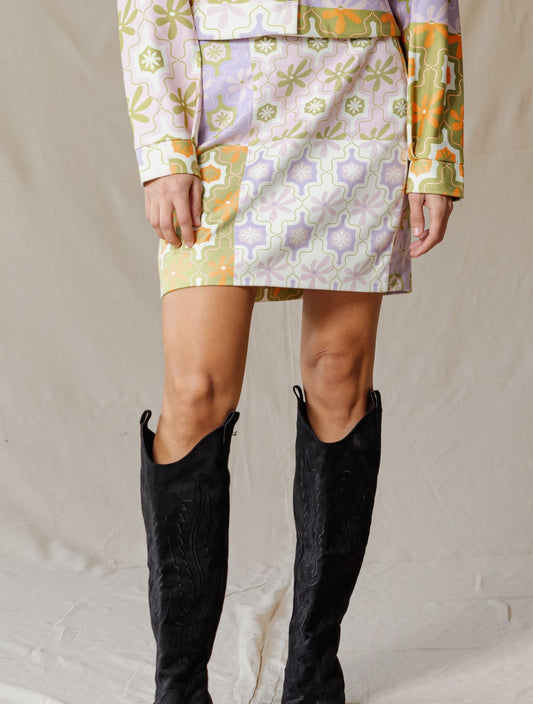 Floral Mosaic Suede Skirt