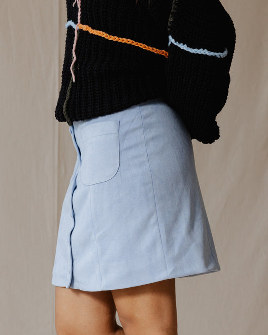 Suede Buttoned Mini Skirt Baby Blue