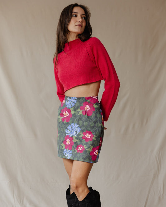 Red Blossoms Suede Skirt