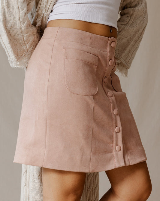 Suede Buttoned Mini Skirt Pink