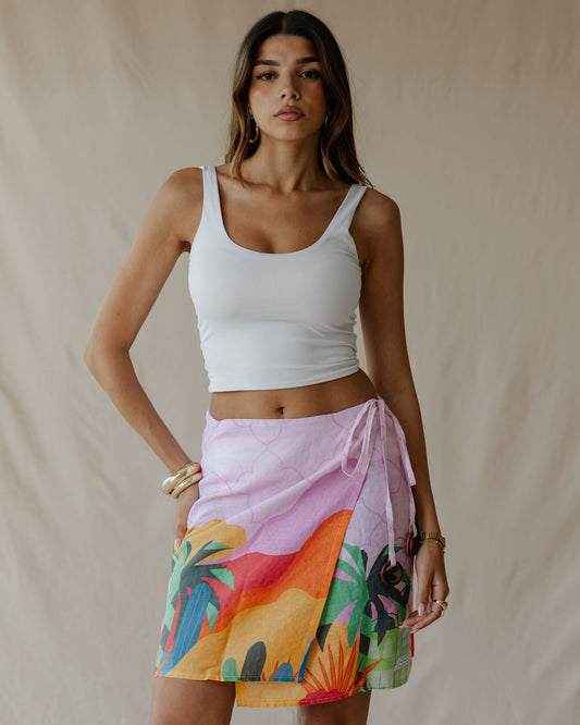 Pink Sunset Oasis Linen Skirt