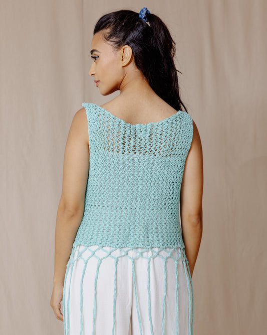 Handmade Trico Fringes Top Mint