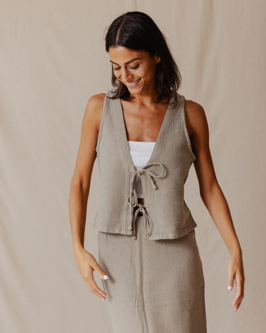 Tie Front Knitted Vest Beige