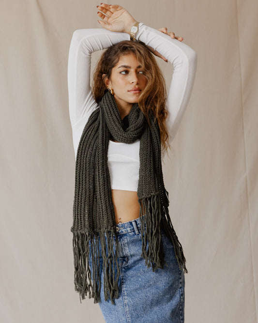 Sciarpa con frange di bordo fatta a mano Oliva