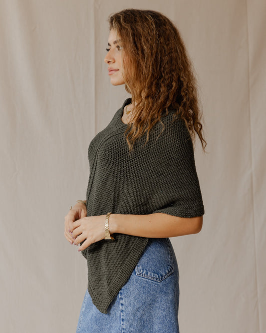 Sciarpa Poncho fatta a mano Oliva