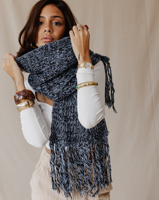 Sciarpa con frange di bordo fatta a mano nera