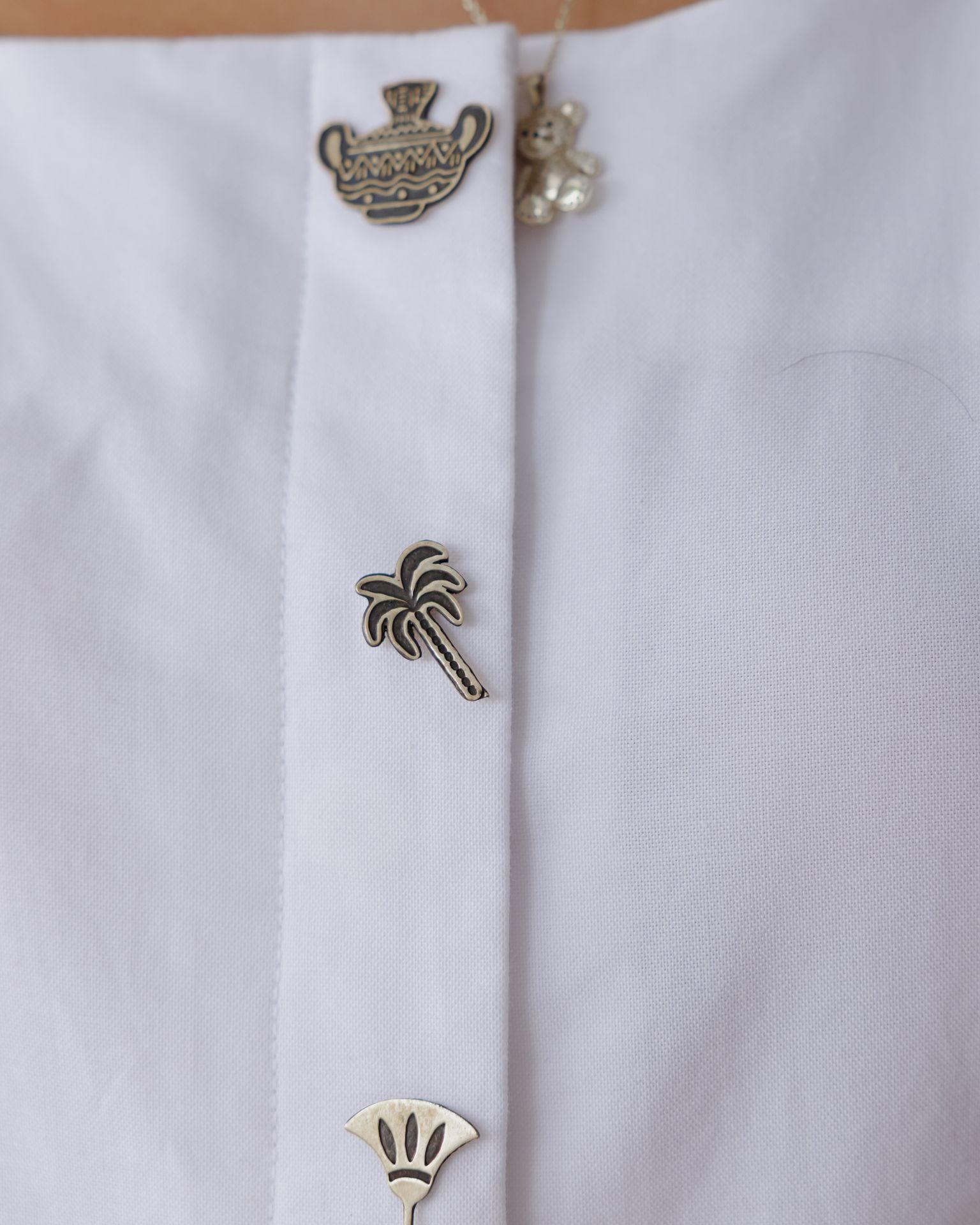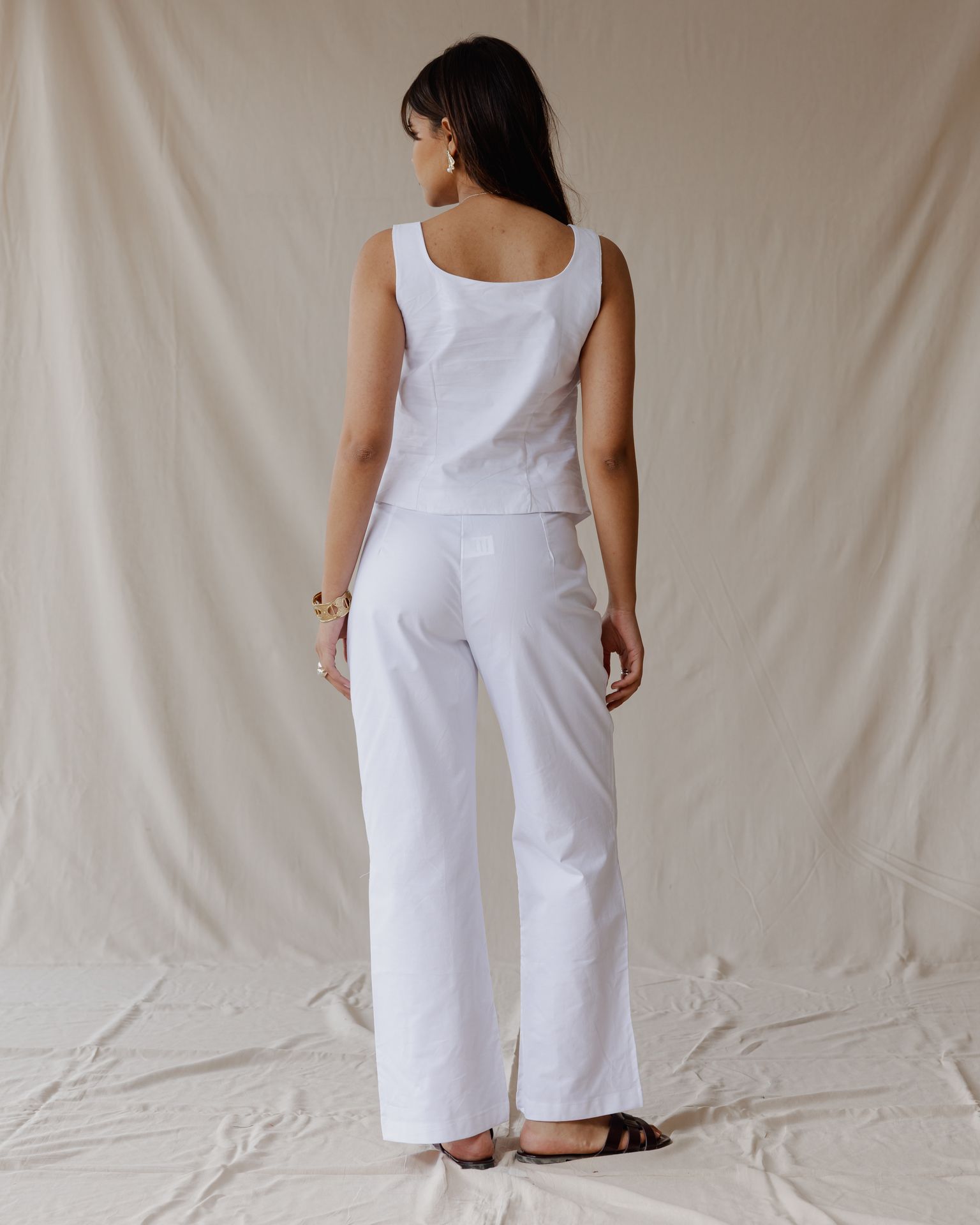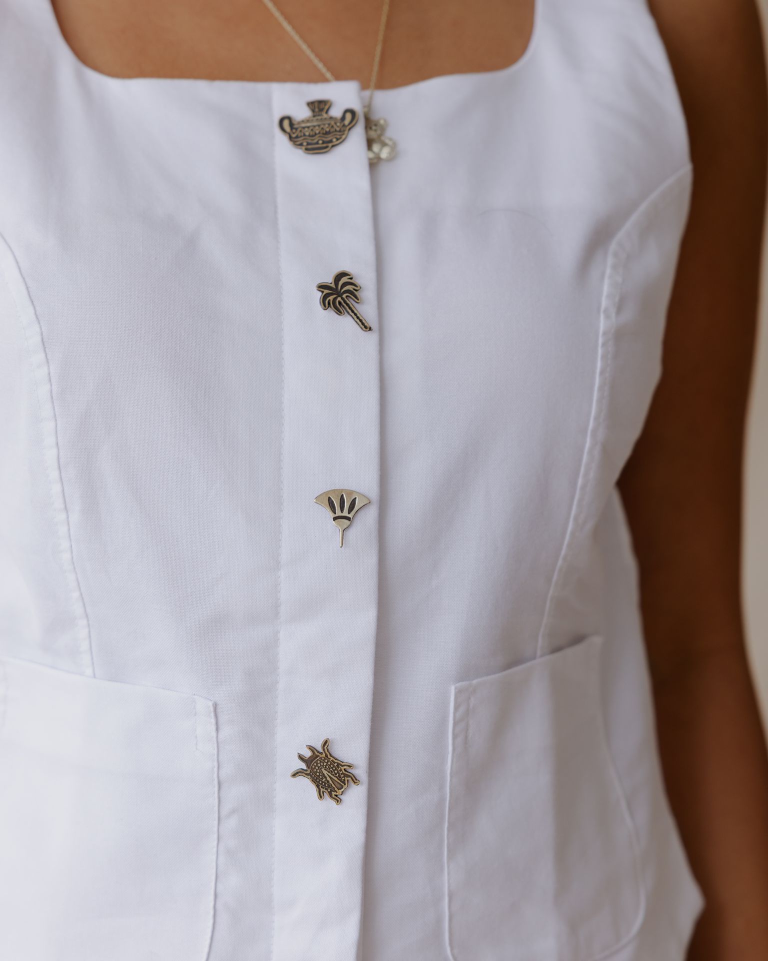 Questo completo in cotone a due pezzi è composto da un gilet sartoriale e pantaloni dalla vestibilità comoda con tasche anteriori. Il gilet è dotato di bottoni nascosti per una funzionalità impeccabile e di bottoni in rame staccabili che si agganciano come orecchini: personalizzalo a piacere senza compromettere la chiusura. Facile da indossare insieme o separatamente, è un capo versatile e indispensabile per la quotidianità.