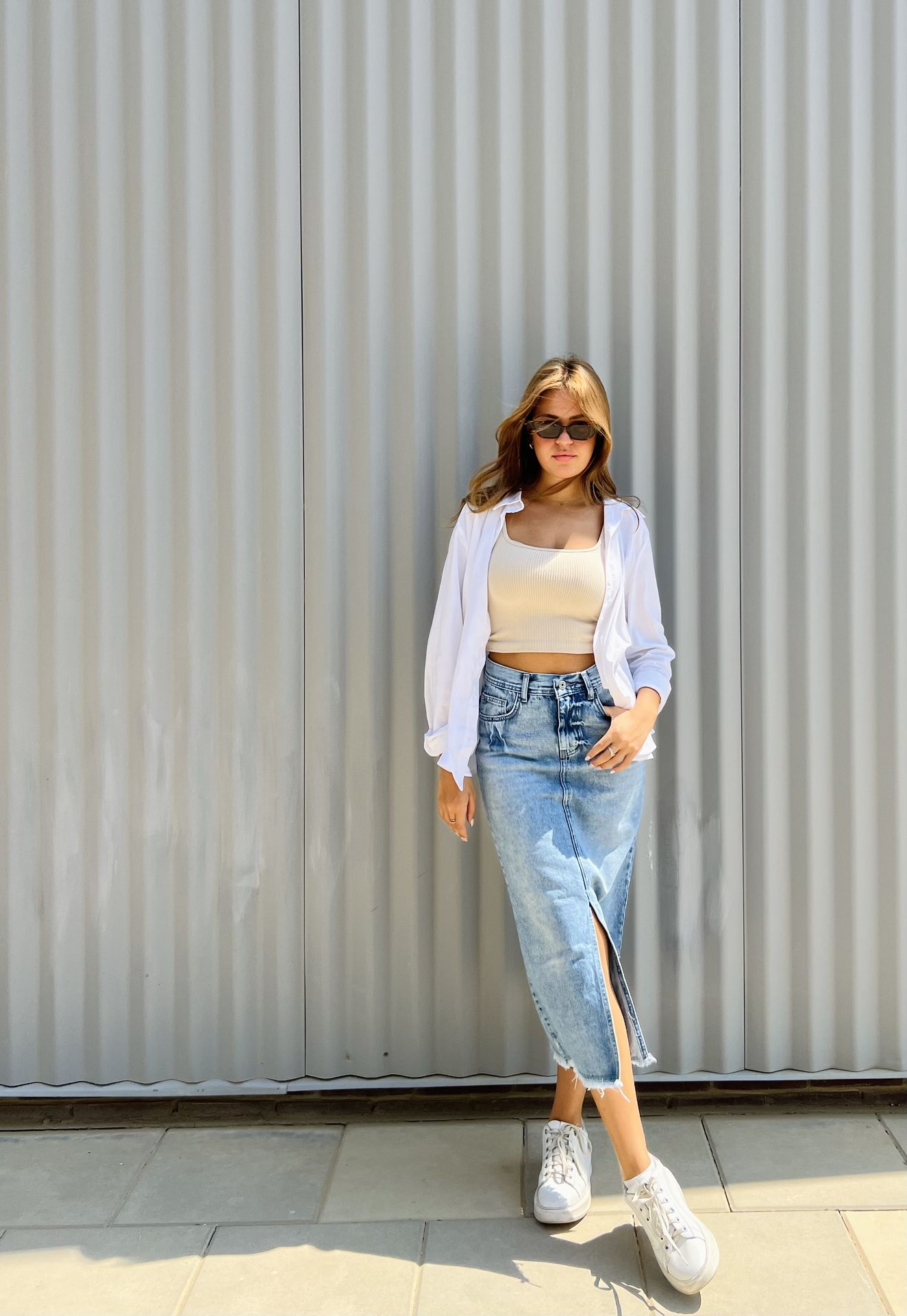 Ecco la nostra gonna in denim imperdibile della collezione PLM Nation. Con uno spacco alla moda e dettagli audaci, unisce uno stile giovanile a un tocco moderno. Realizzata in denim resistente, questa gonna offre versatilità e resistenza per l'uso quotidiano. Entra nel mondo alla moda di PLM Nation e fai una dichiarazione con questa gonna in denim, esprimendo il tuo stile personale unico.
