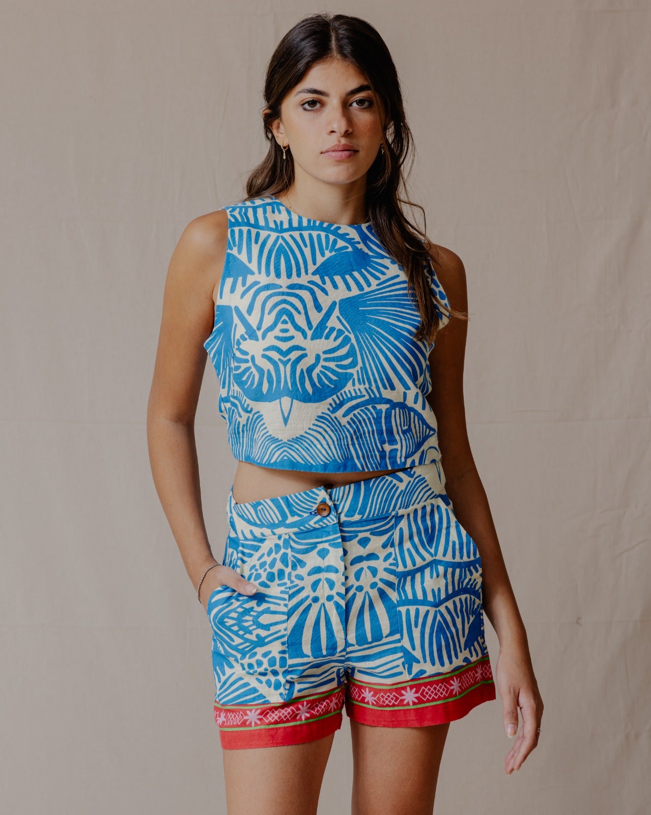 I nostri set di pantaloncini e top in lino stampato offrono sia comfort che stile, perfetti per un look rilassato e casual. Realizzati in tessuto di lino di alta qualità, i nostri set sono disponibili in 5 fantasie per adattarsi a qualsiasi senso della moda. Sono perfetti per una giornata fuori con gli amici o un rilassante weekend a casa.