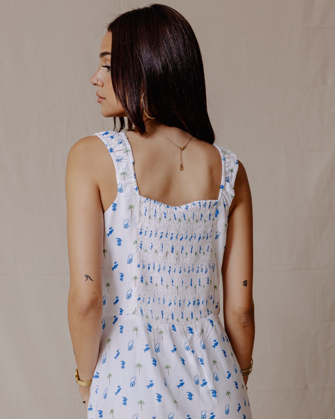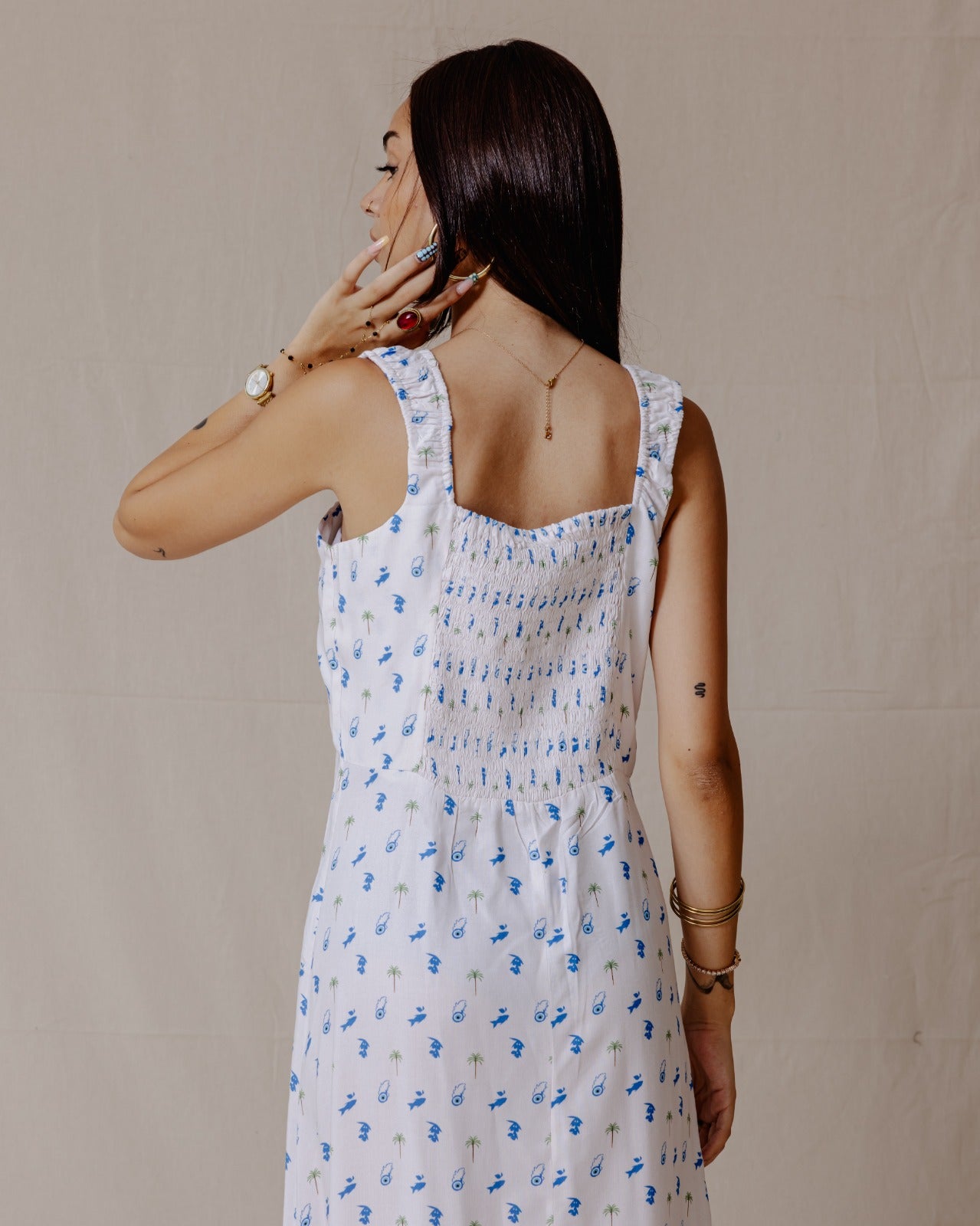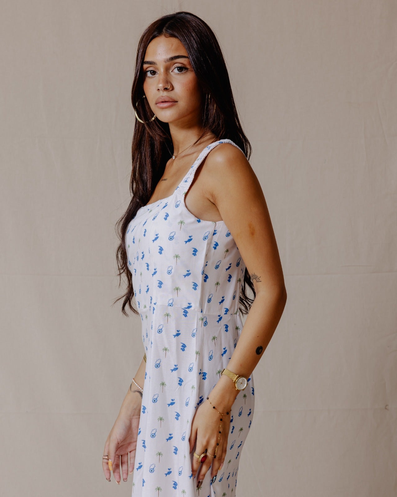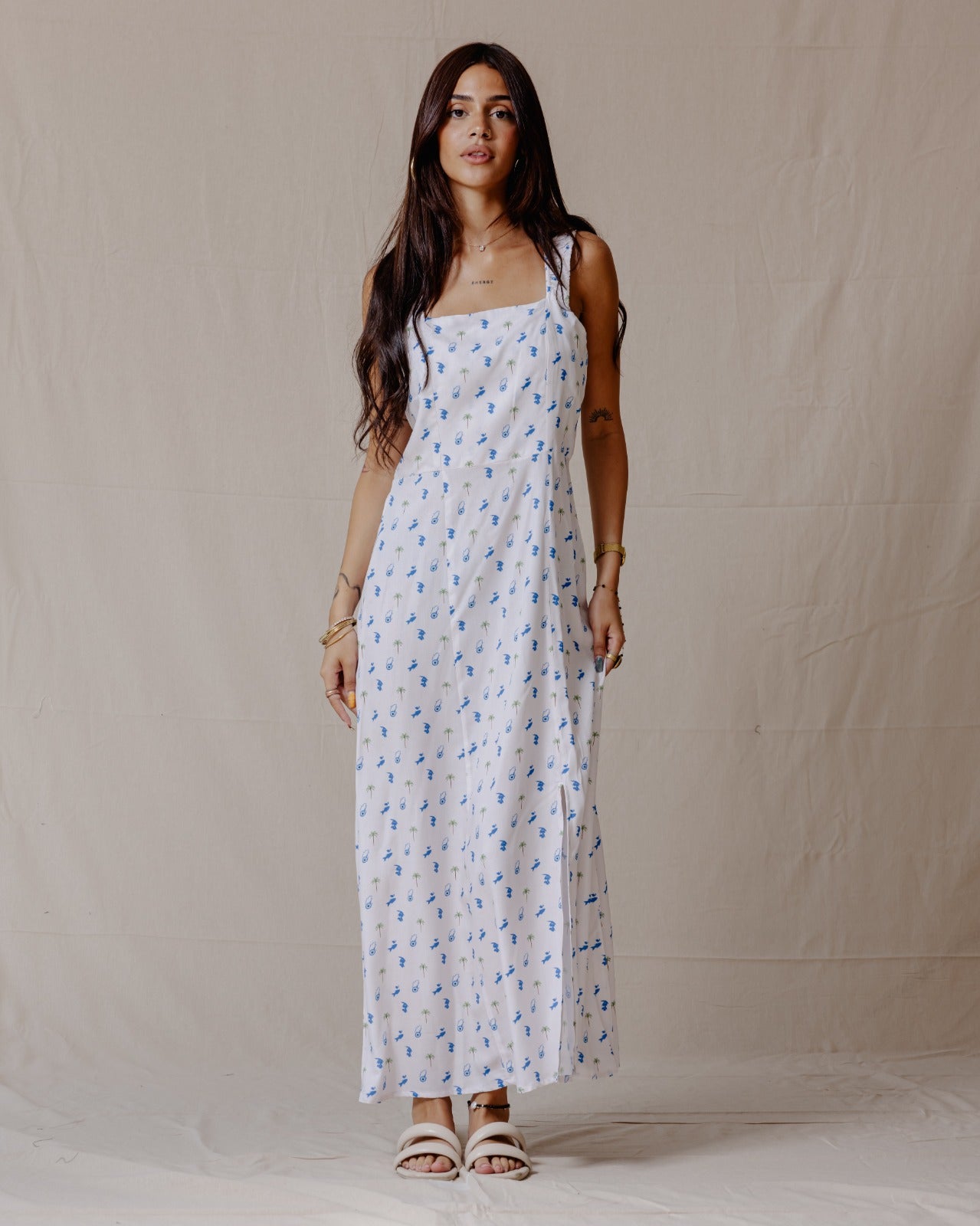 Incontra il nostro abito Maxi Palm Tropical Nazar: comodo, elegante e perfetto per weekend rilassati o uscite in spiaggia, questo vestito con la sua scollatura quadrata e spacco laterale è la tua scelta.