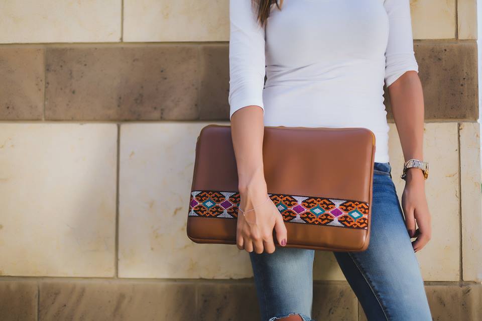 The Etamine Laptop Sleeve combines padded protection with cultural artistry. Lightweight, stylish, and available with strap for easy carrying.