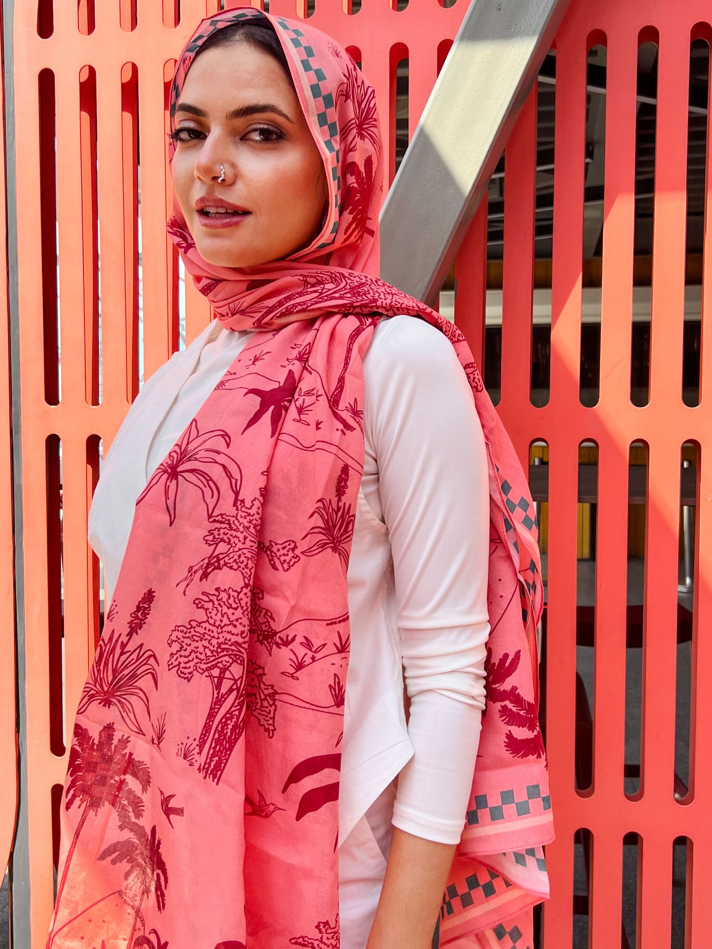 Monkey Land Monochrome Reds Cotton Scarf