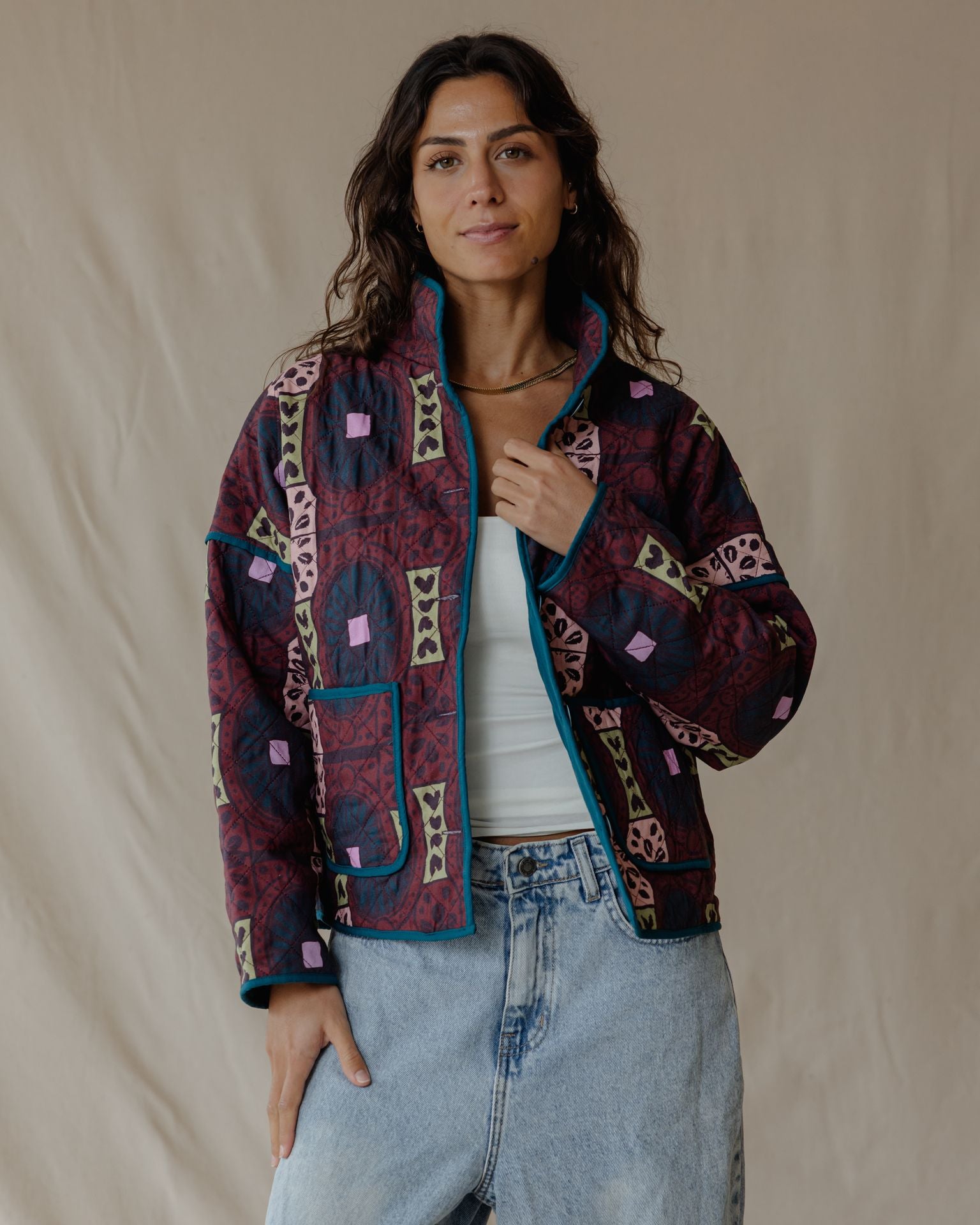 A quilted jacket designed in a relaxed fit, featuring a front button closure, contrast piping, and two front pockets. Ideal for layering and effortless everyday styling.