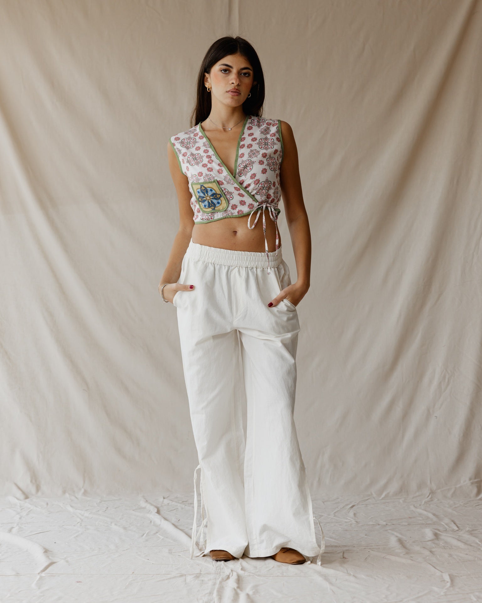 Forget your everyday trousers. These high-waisted, wide-leg pants feature unique, fashionable self-tie details down the side for a totally relaxed and chic look.