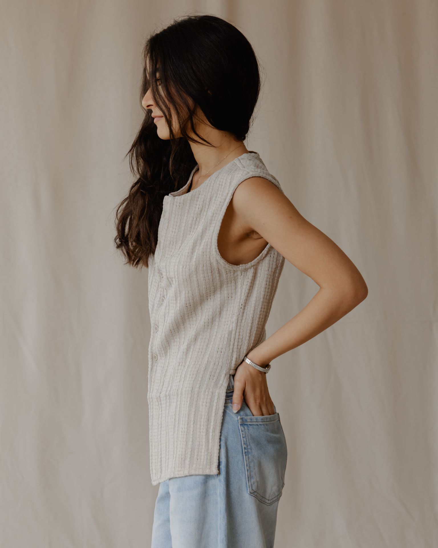 This minimalist vest brings a modern edge to everyday style with its asymmetric cut and effortless drape.
